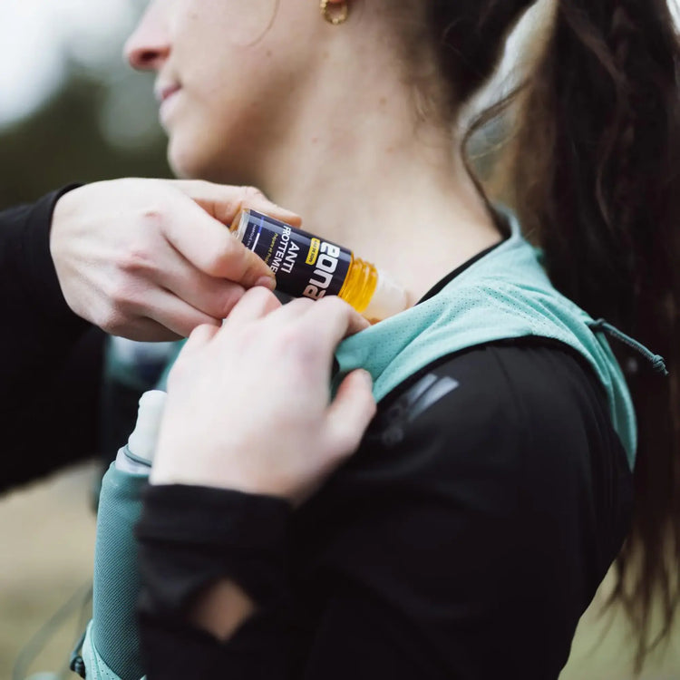 Appliquer l'Huile de soin Anti-frottement Eona en massage court avant l’effort, sur les zones sollicitées telles que les cuisses ou les pieds.